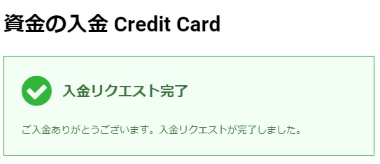 カード情報を入力し、「入金」ボタンをクリックすると、XMページに戻り、決済確認が表示されます。