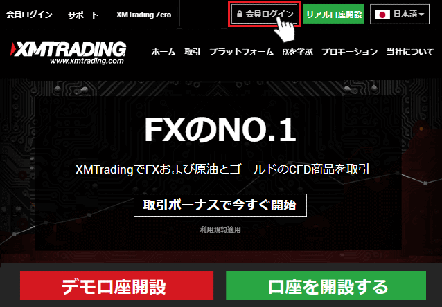 XM口座に入金するならカード入金がやはり一番便利です。カード入金の場合手数料はかからないし、数分ほどXM取引口座へ反映されます。XM ホームページより、マイページにログインします。XMホームページの「会員ログイン」ボタンをクリックし、ログイン画面を開きます。まだ、XM口座をお持ちでない方はXM登録ページから新規口座開設を行ってください。